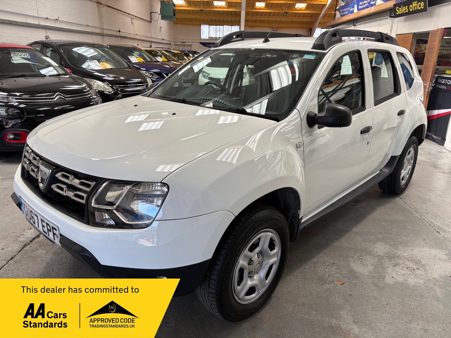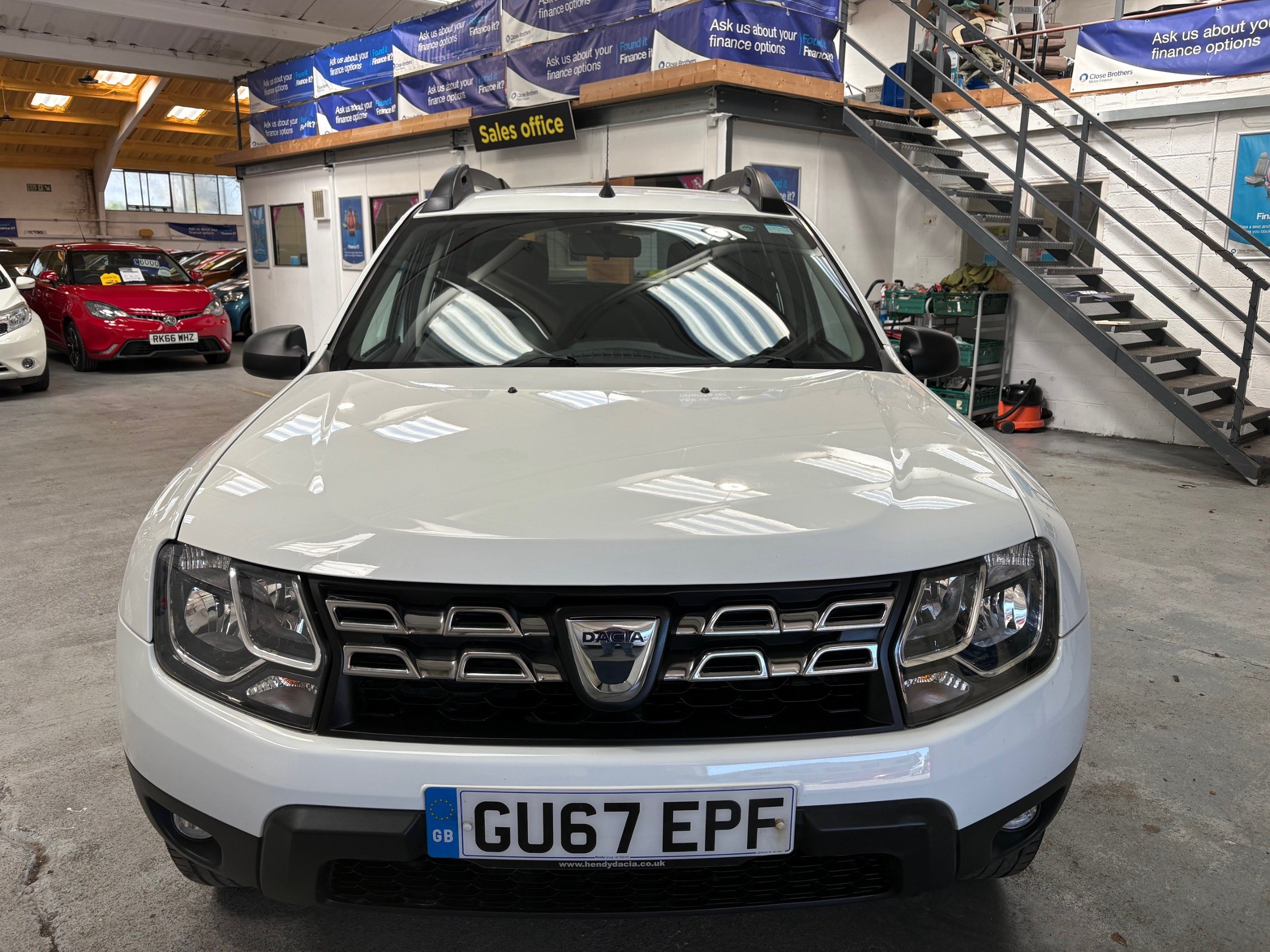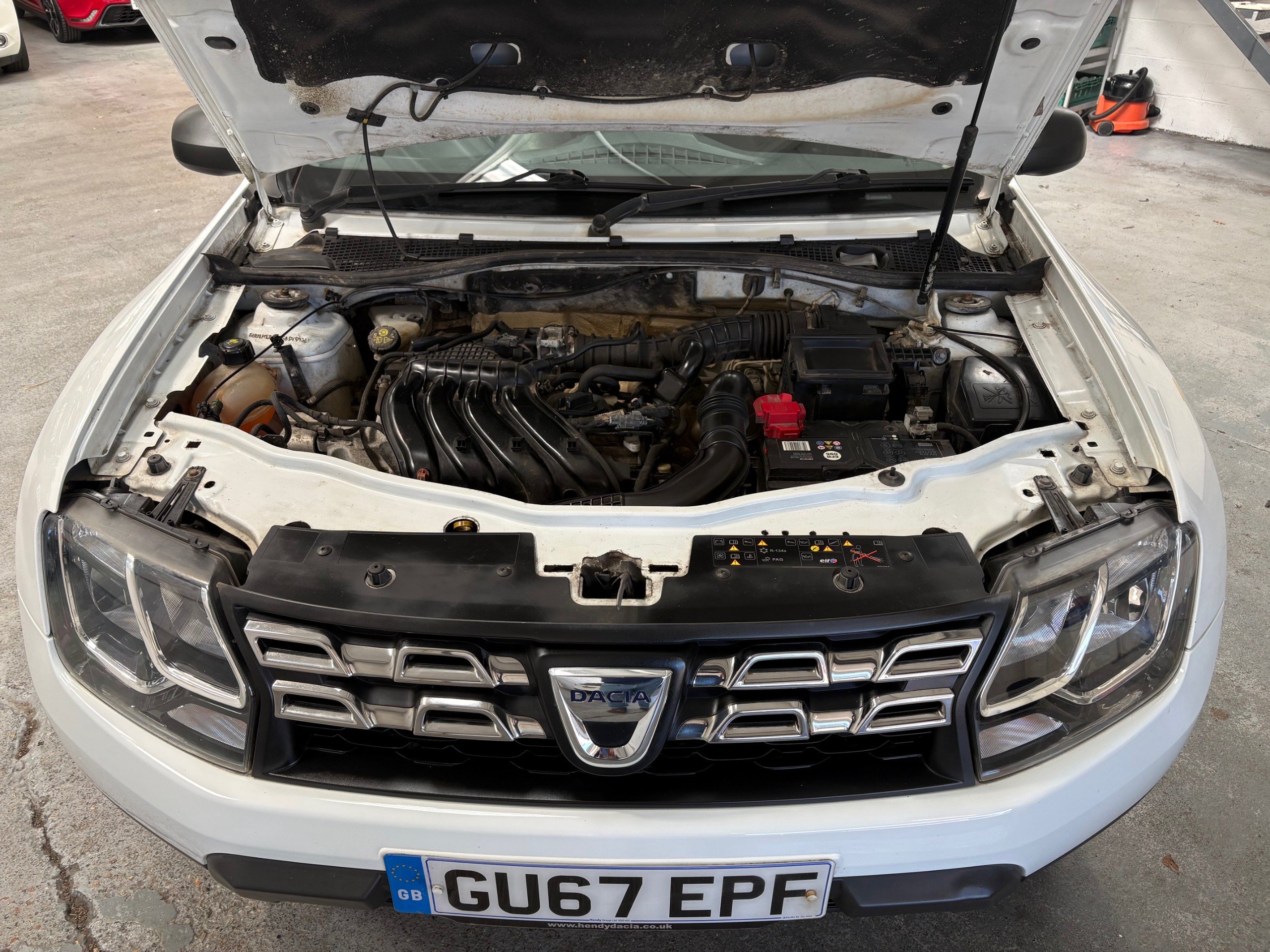This 2017 Dacia Duster 1.6 SCe Ambiance SUV with a petrol manual engine and Euro 6 compliance (s/s) is a reliable and efficient vehicle with only 57000 miles on the clock. With 5 doors and 5 seats, it's the perfect SUV for family outings or off-road adventures. It is ULEZ compliant, making it ideal for city driving. The car comes with features such as an emergency spare wheel, glacier white exterior, 16in steel wheels, black door mirrors, and a black number plate surround with satin chrome Duster inscription. This well-maintained Duster is ready for its next owner to enjoy its practicality and rugged charm. Overall a Fabulous SUV that has been really well maintained by it's previous owners. It boasts a Full Service History, has 2 keys and will be issued with a new MOT upon purchase. -
